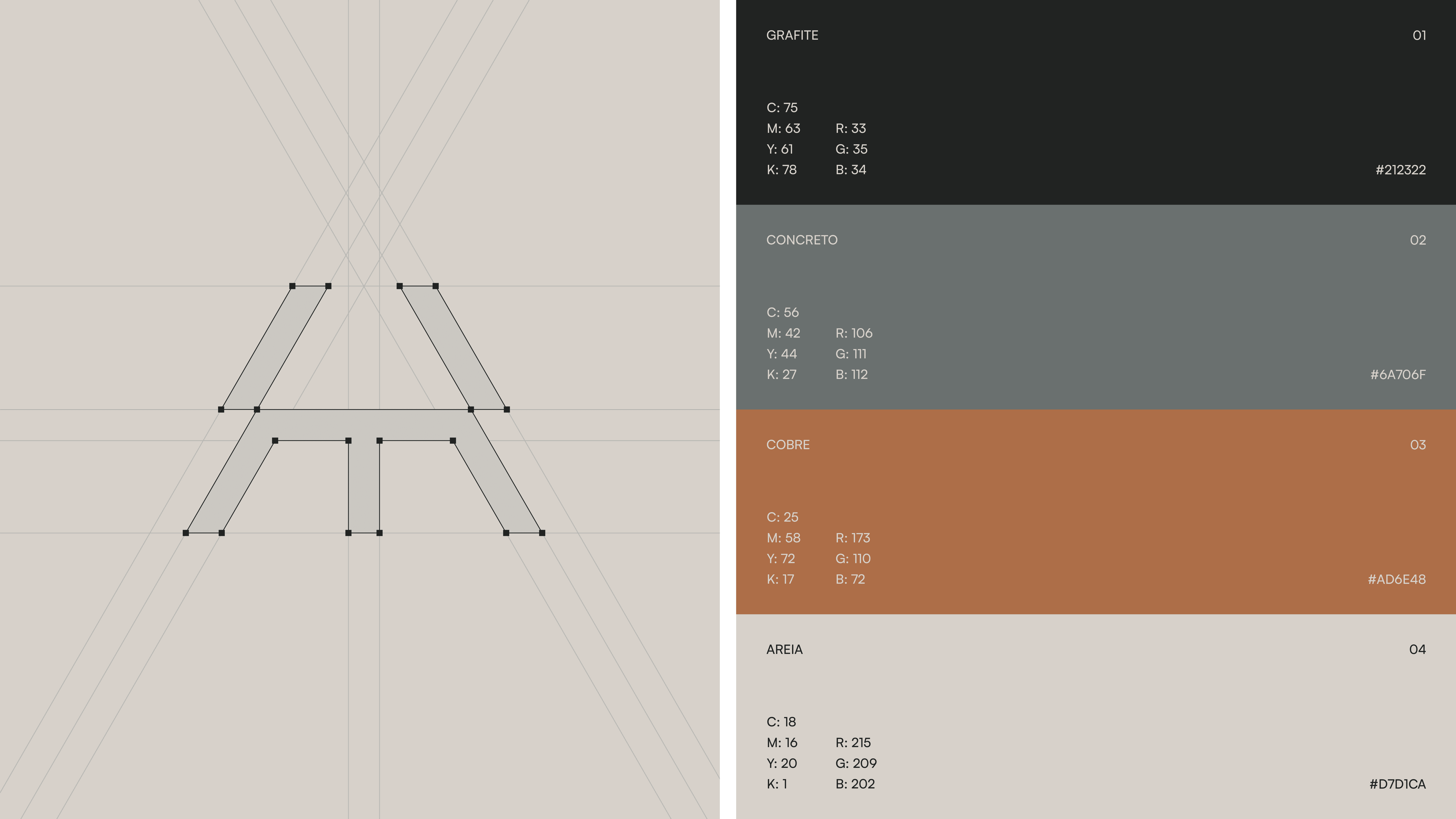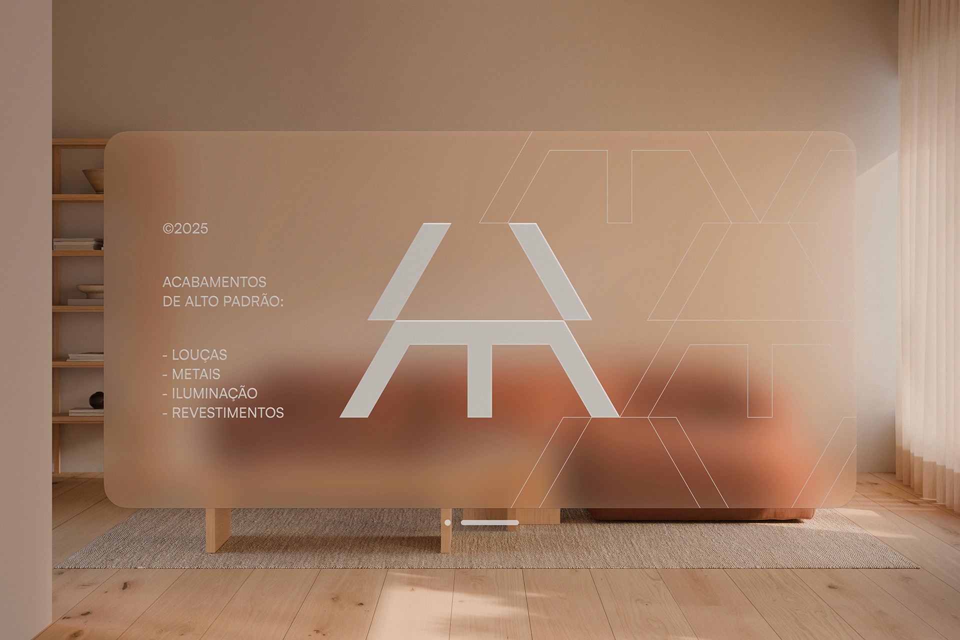 In the visual identity, we aim to bring a premium, luxurious, and refined concept to communicate with a discerning and high-standard audience. The symbol represents a crown, the initial of the company, and the diagonal shapes abstractly symbolize the finishes that the brand offers, such as metals and coatings. The typography and color palette are sophisticated and noble, and the pattern brought the concept of mosaic, floors, and tiles to the visual identity, reinforcing its positioning.