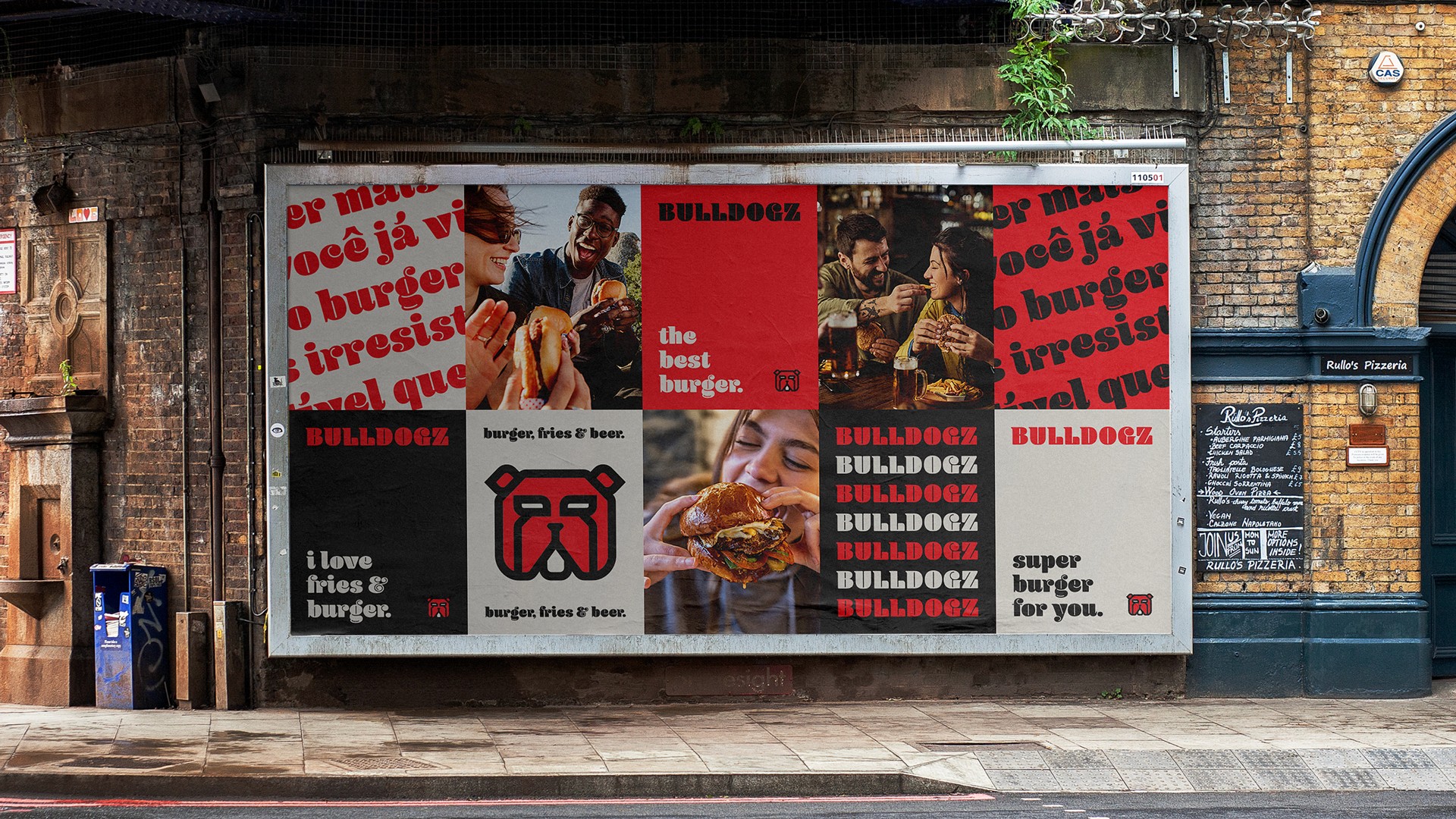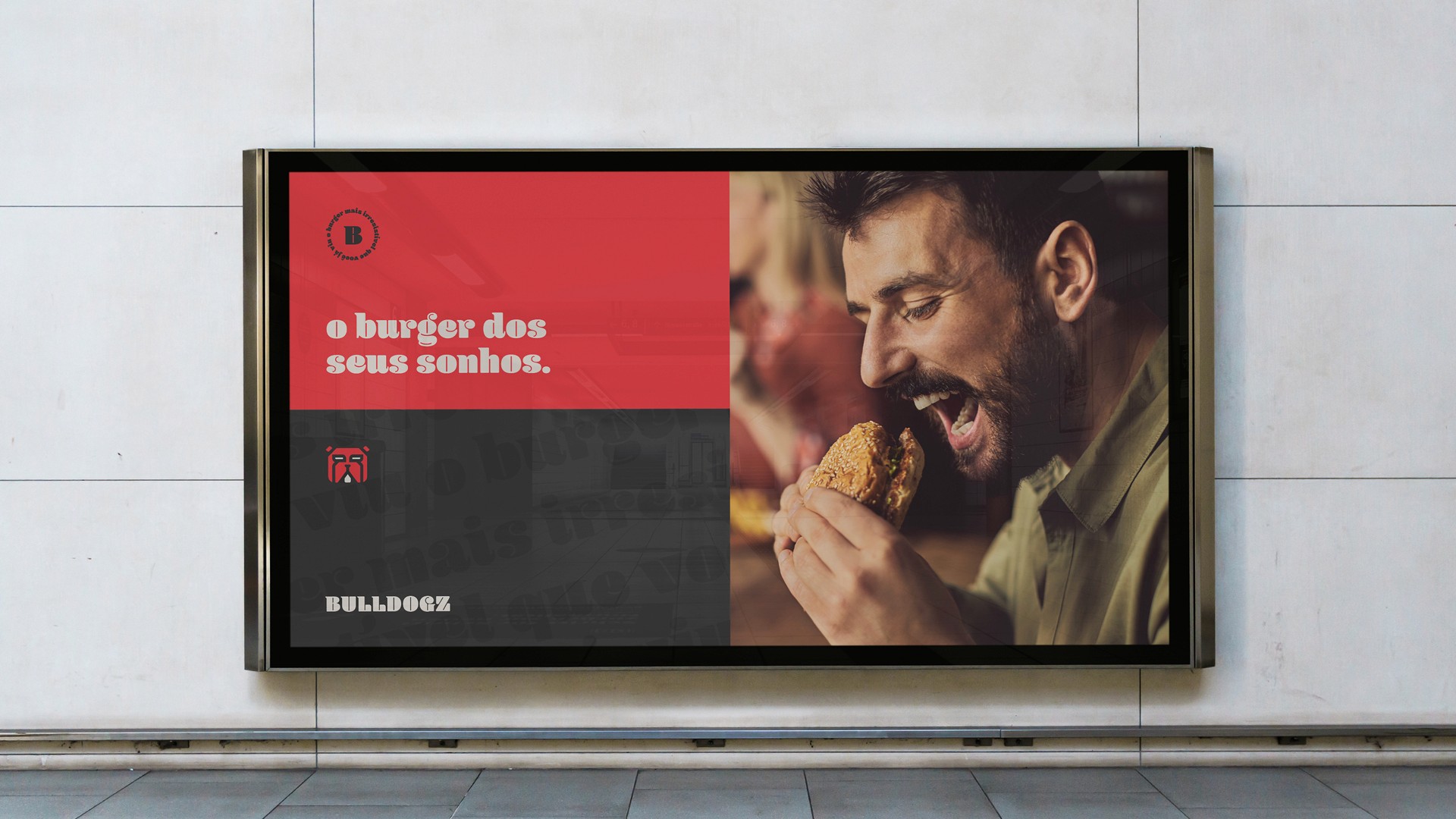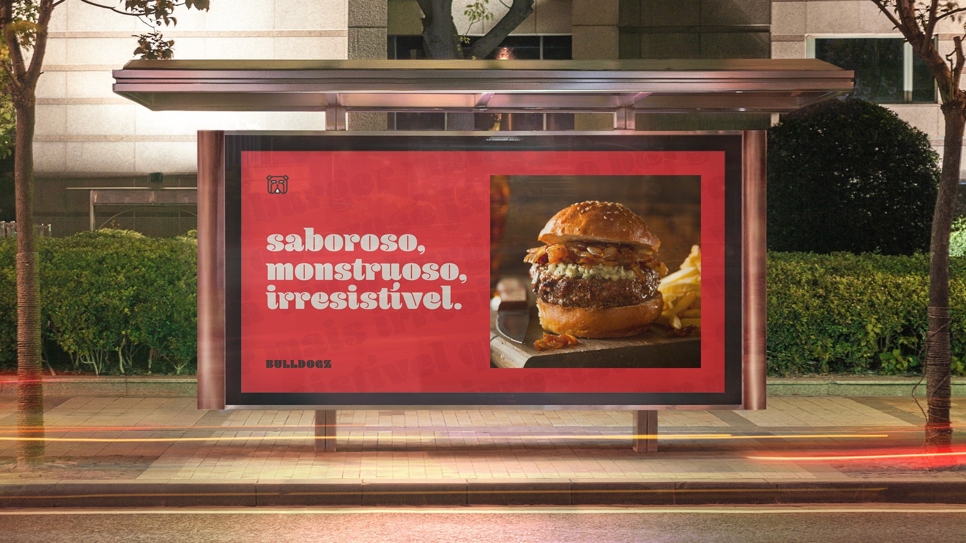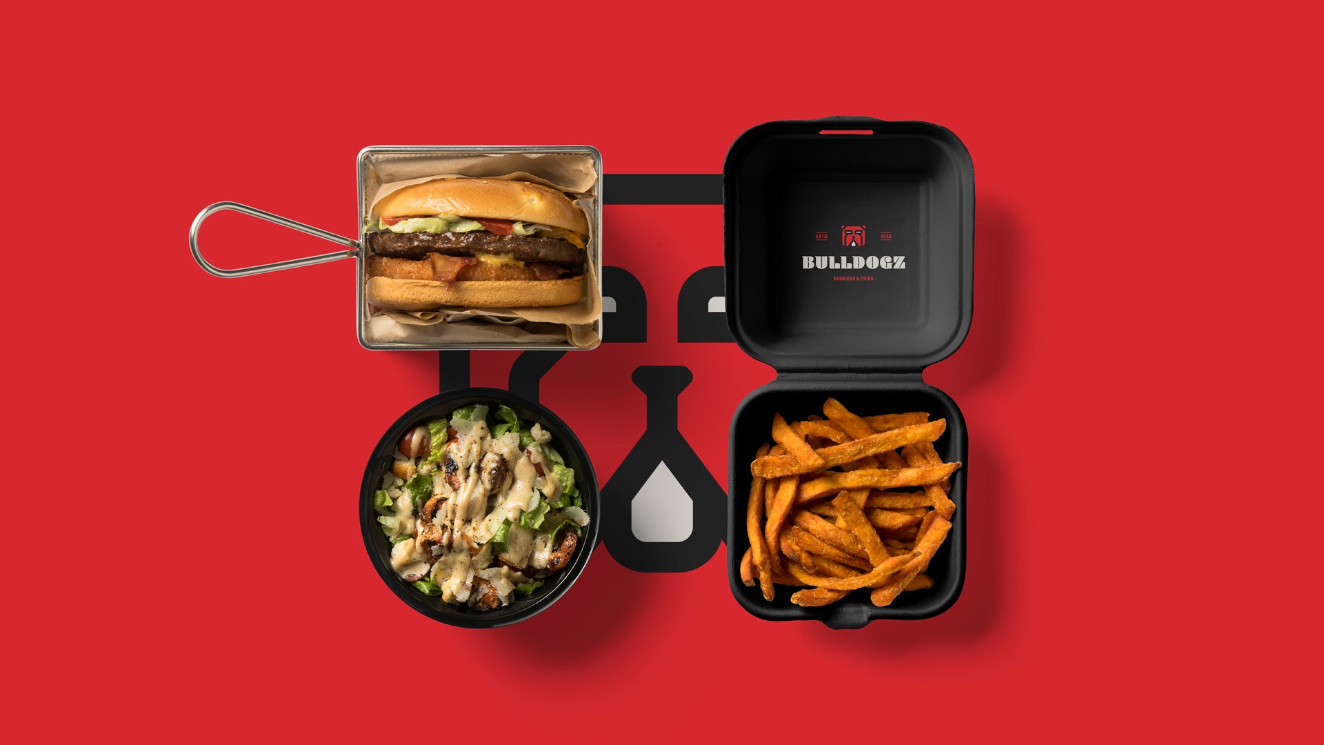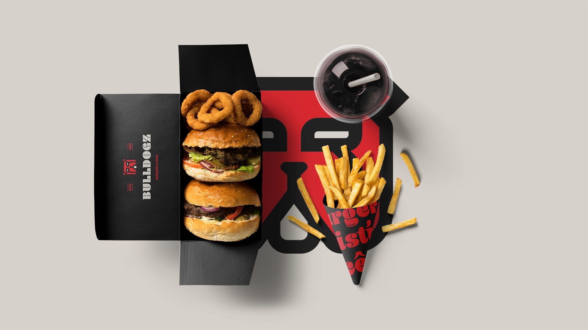 Bulldogz is a hamburger restaurant that enters the market with a bold and different purpose, the warm gray, red, and black colors depict its strong personality well, and the bulldog was chosen because it is a strong, imposing animal, and despite looking mean, it is charismatic and kind.