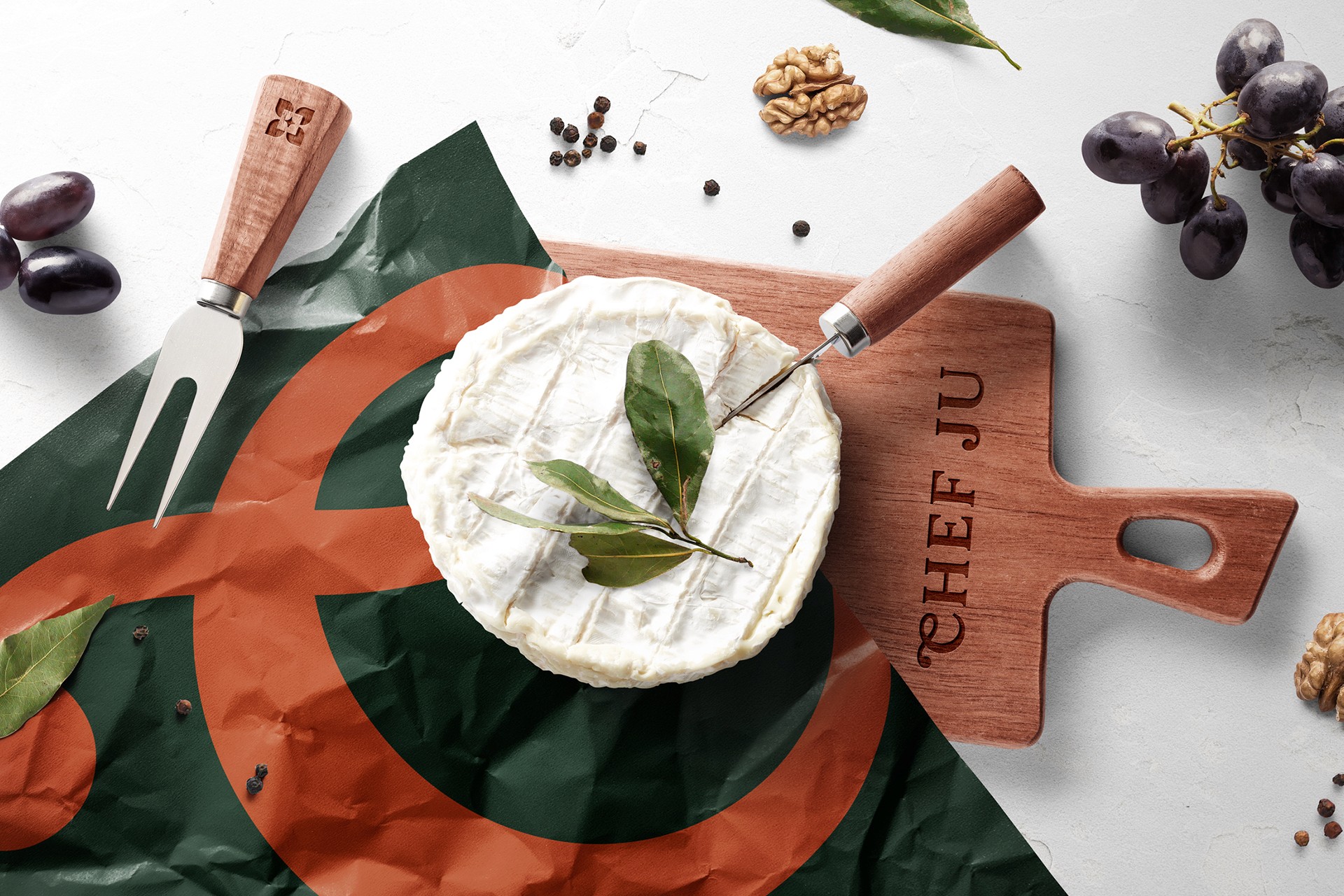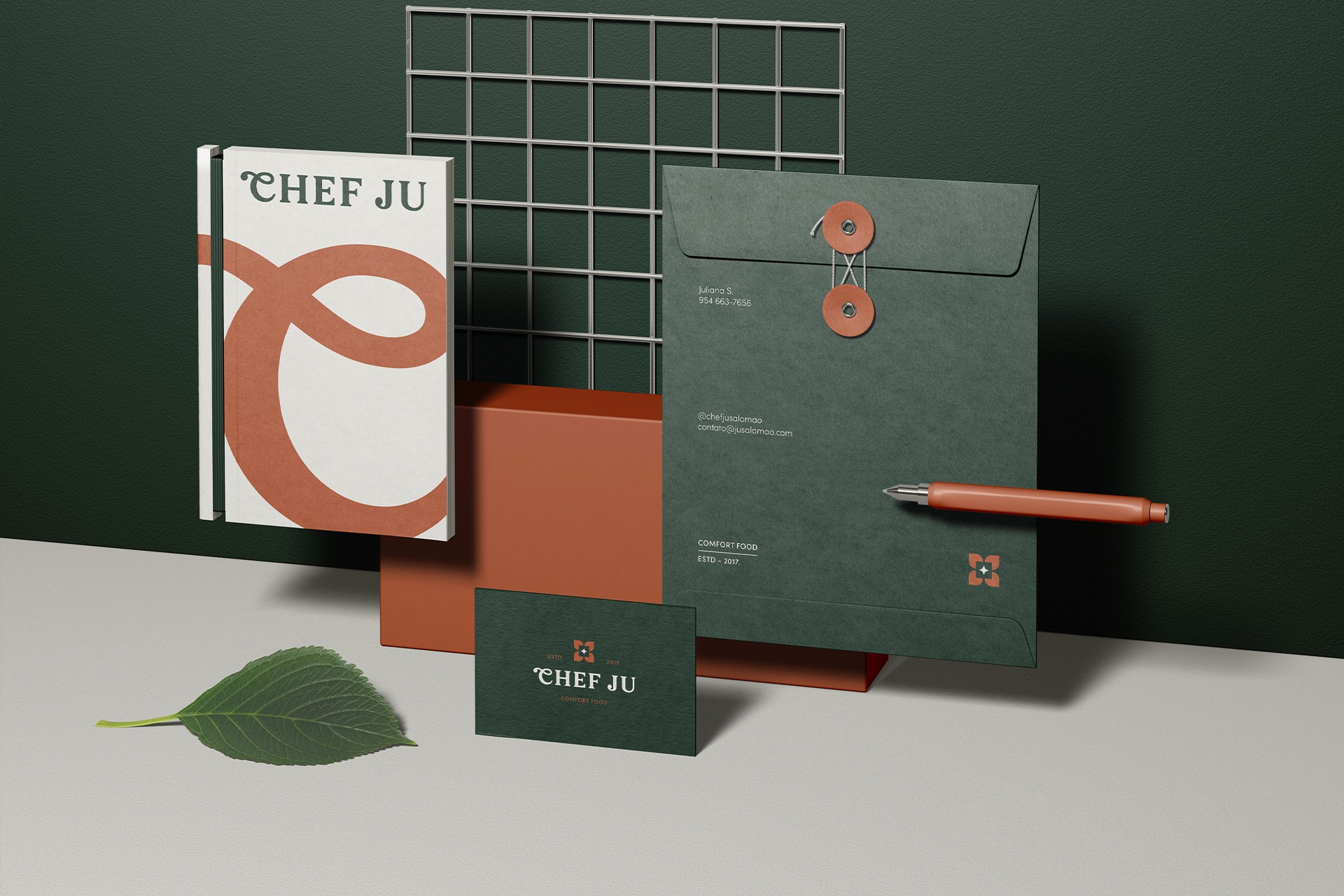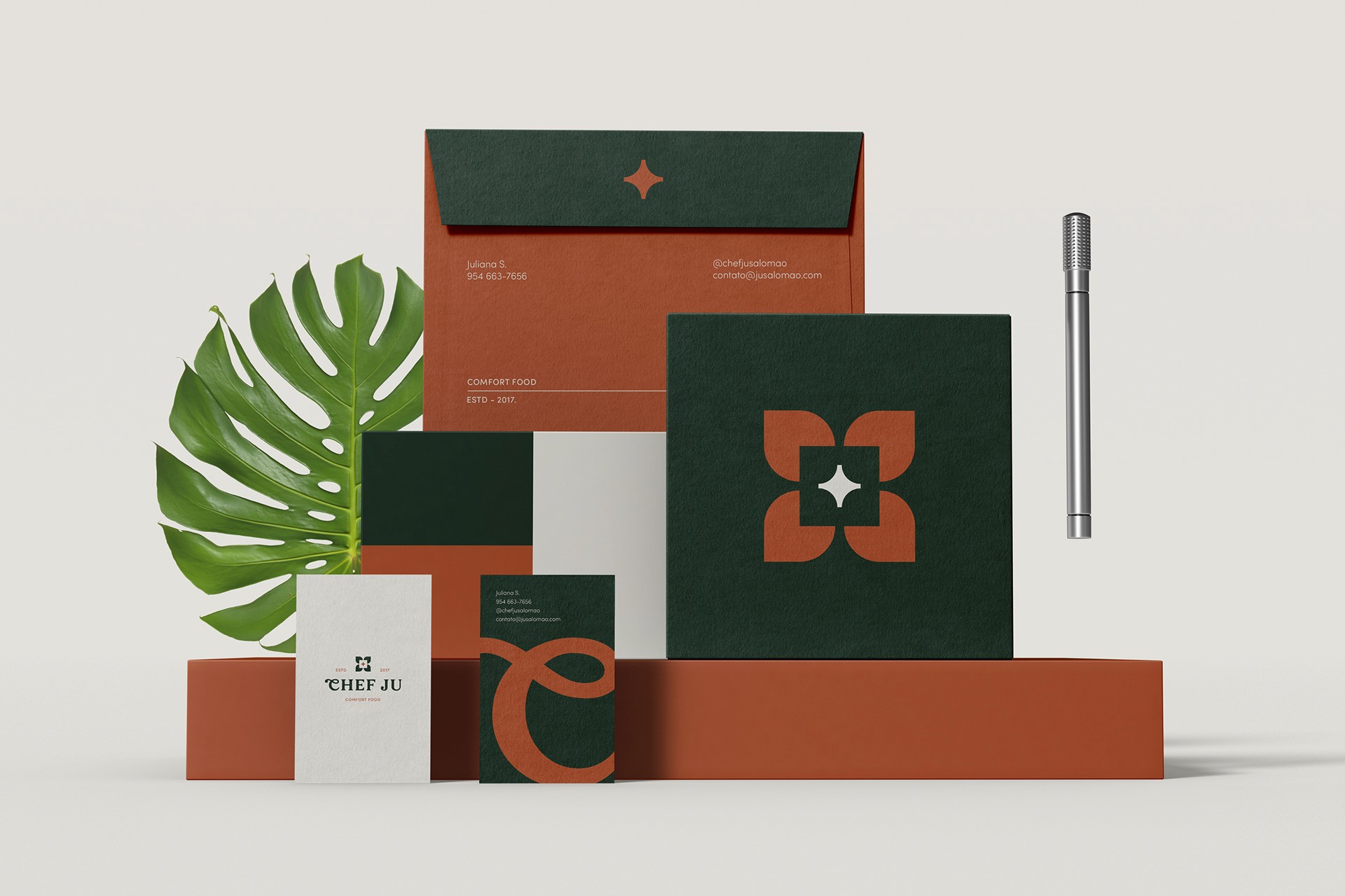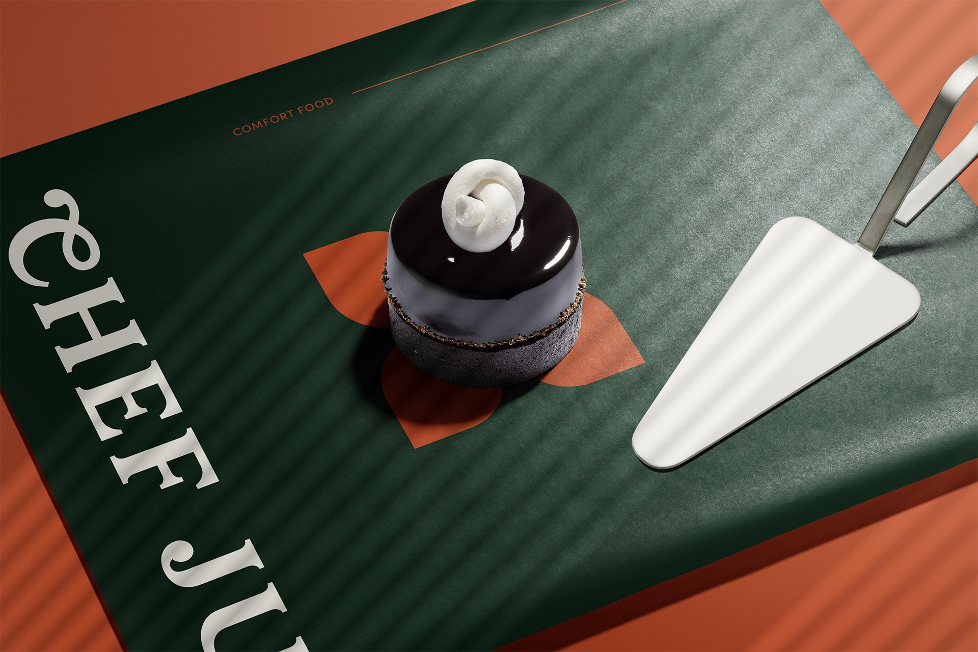 Based on this, a light, modern, and elegant visual identity was created. We can see this in the main typography through the serifs, but also with a glyph with a lot of personality in the letter “C”, which even served as a support graphic. The symbol also had a big impact on the visual identity. Its concept represents leaves, hearts, and light, symbolizing home-cooked and traditional food and all the love the chef has for gastronomy.
