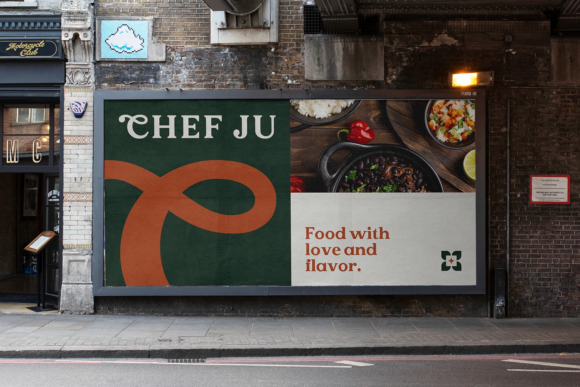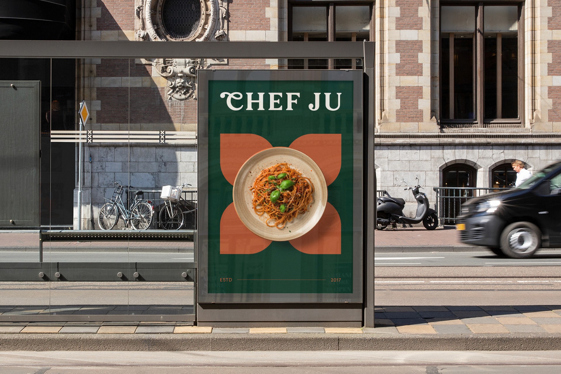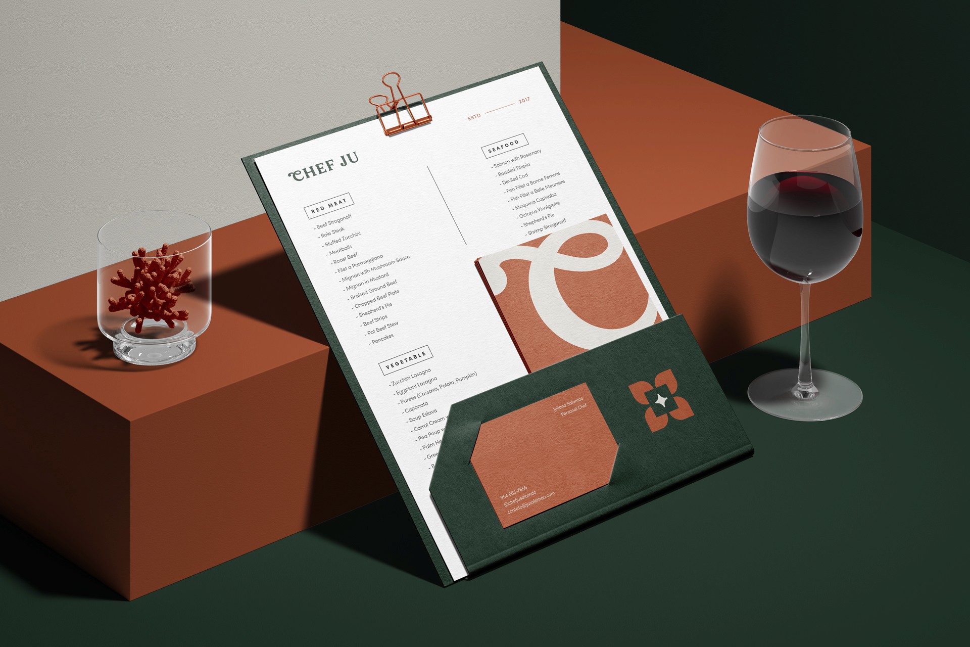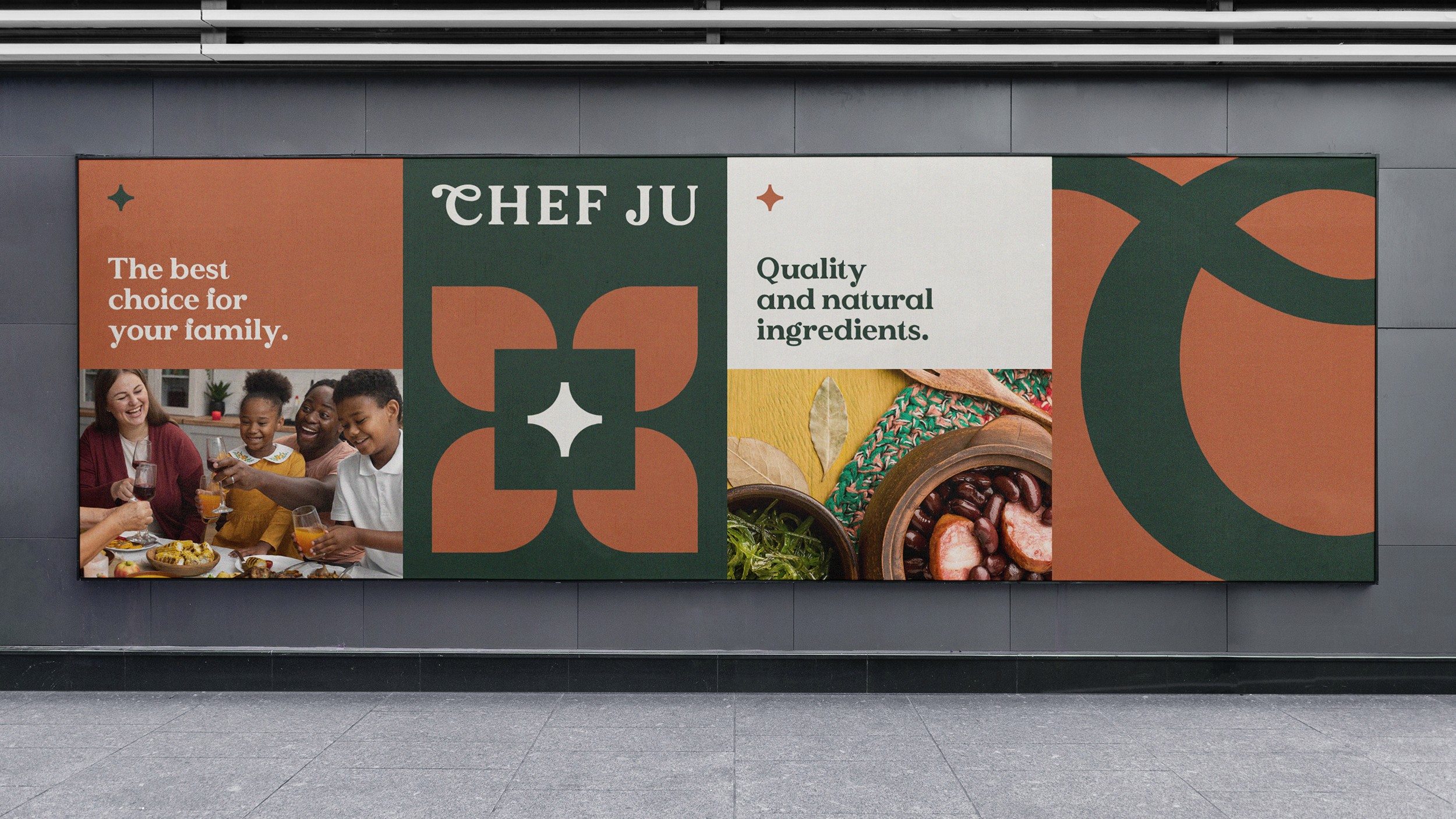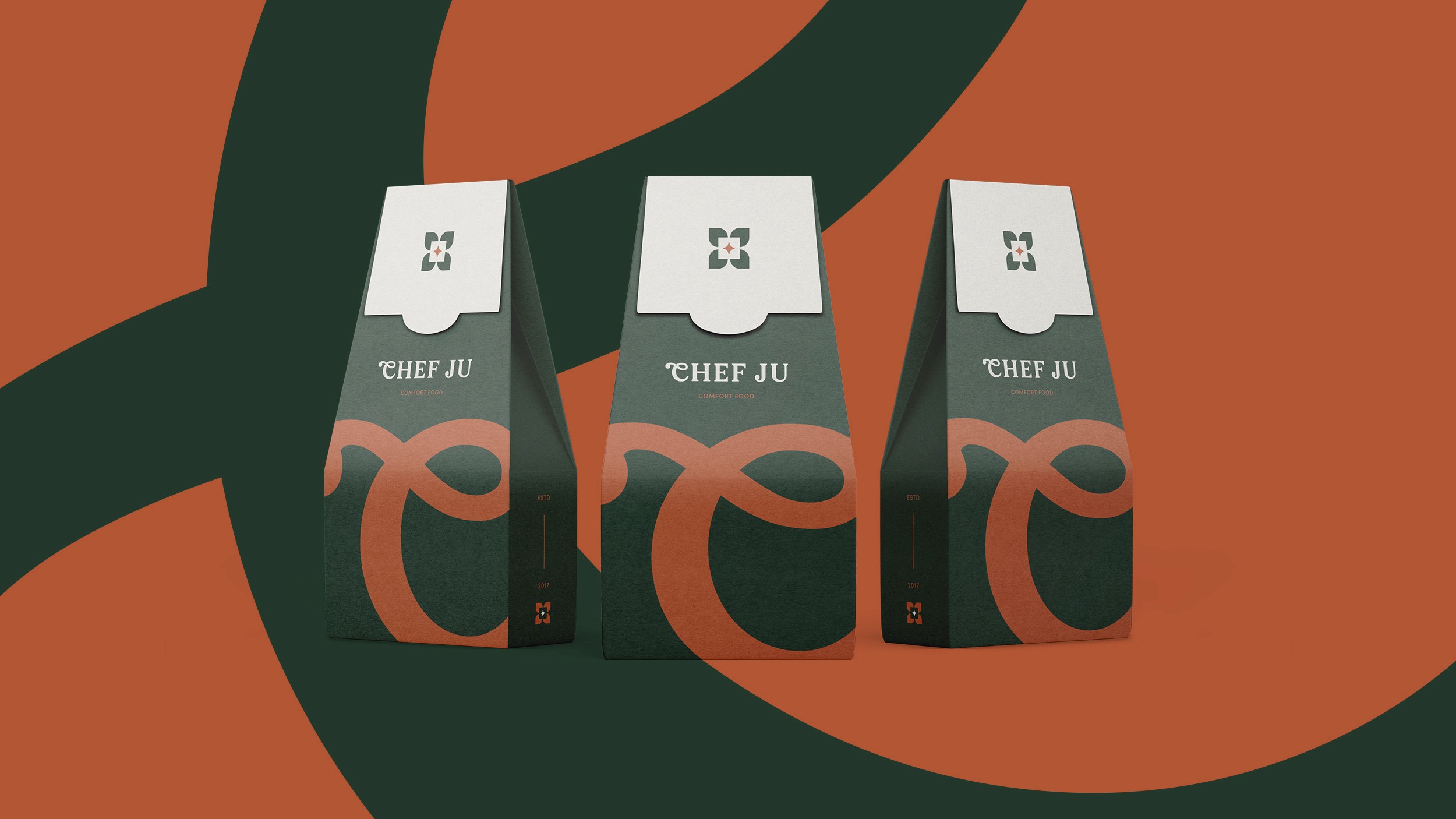 Based on this, a light, modern, and elegant visual identity was created. We can see this in the main typography through the serifs, but also with a glyph with a lot of personality in the letter “C”, which even served as a support graphic. The symbol also had a big impact on the visual identity. Its concept represents leaves, hearts, and light, symbolizing home-cooked and traditional food and all the love the chef has for gastronomy.