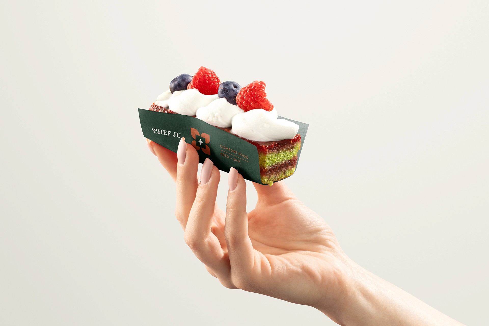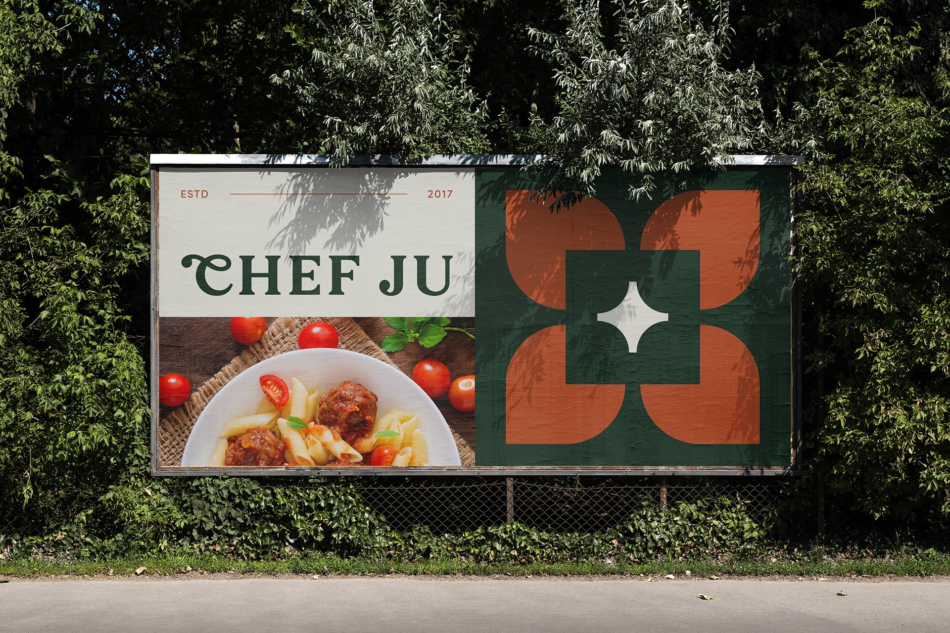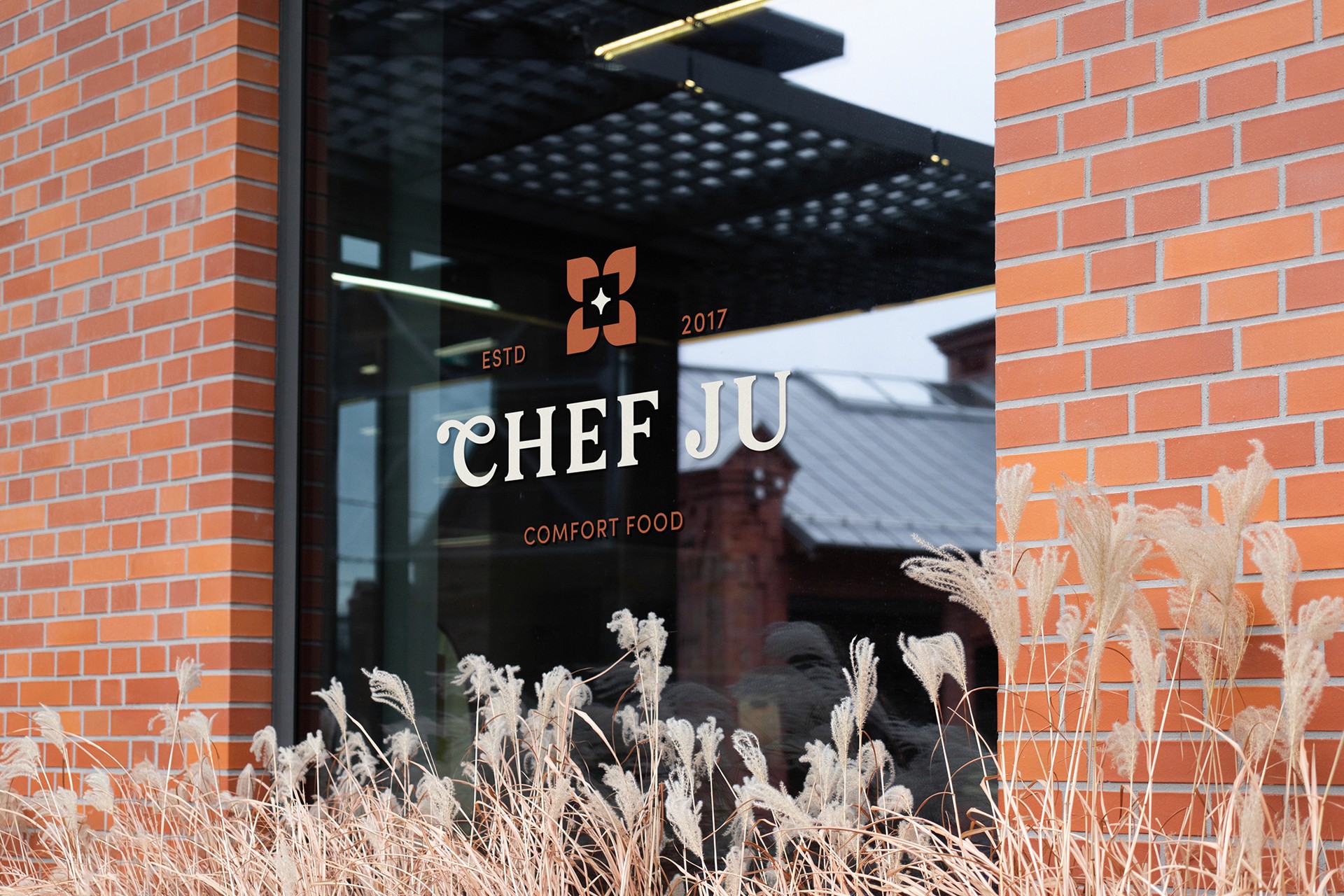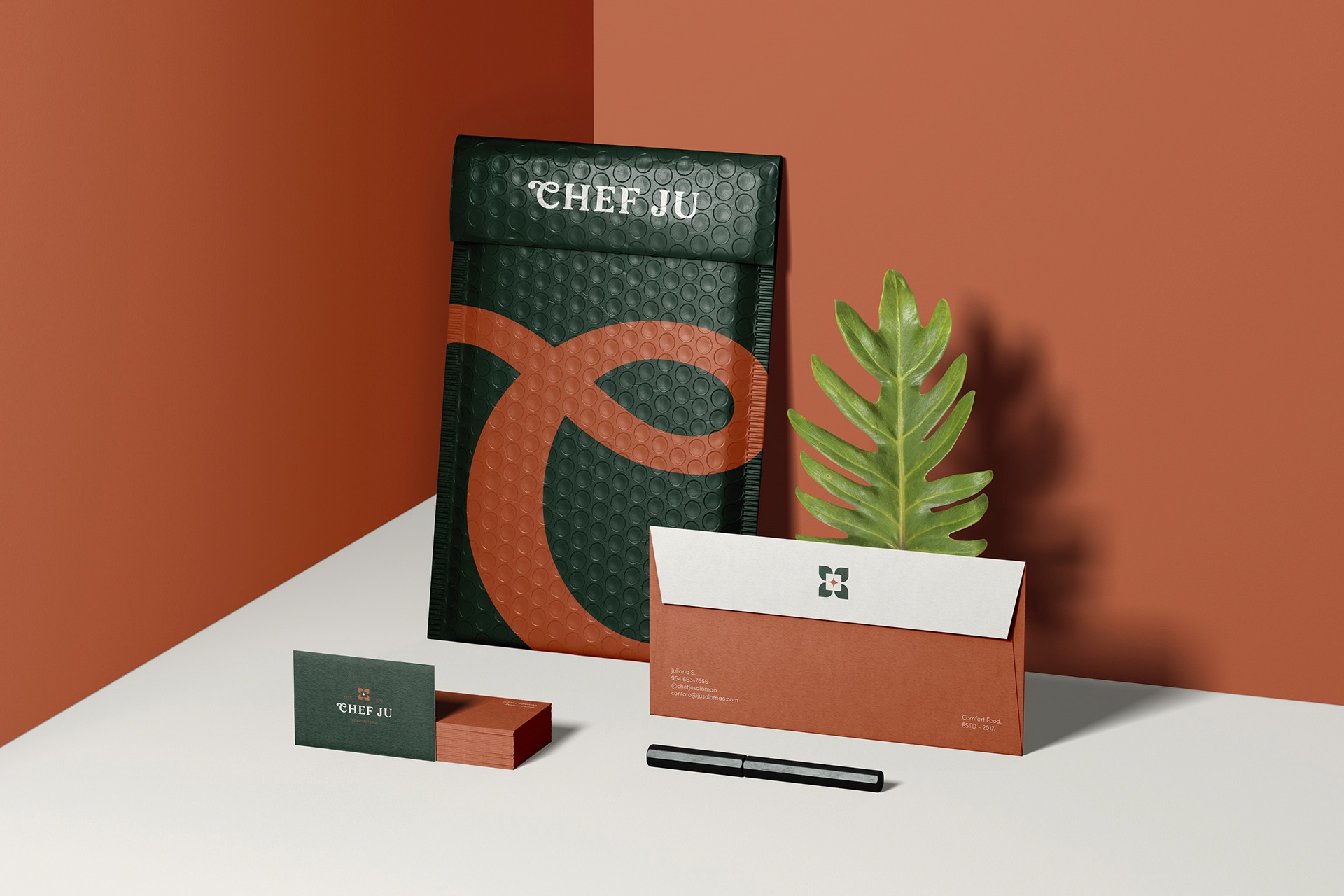 Based on this, a light, modern, and elegant visual identity was created. We can see this in the main typography through the serifs, but also with a glyph with a lot of personality in the letter “C”, which even served as a support graphic. The symbol also had a big impact on the visual identity. Its concept represents leaves, hearts, and light, symbolizing home-cooked and traditional food and all the love the chef has for gastronomy.