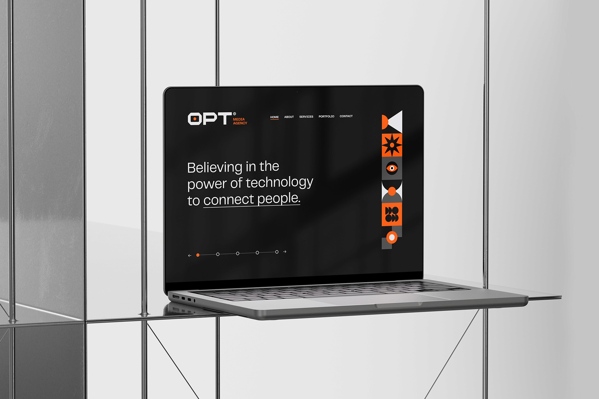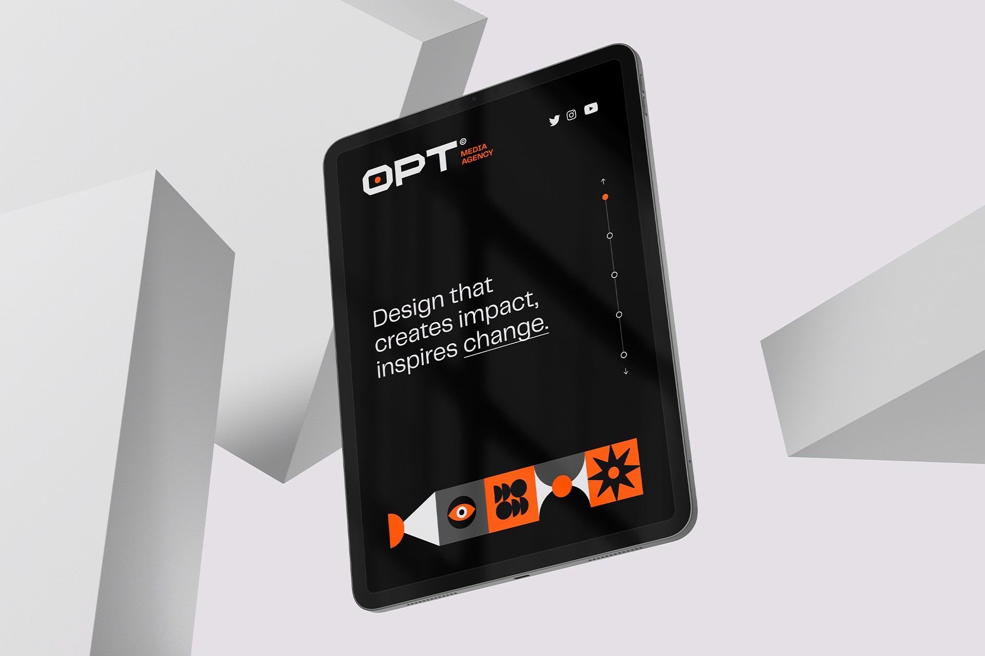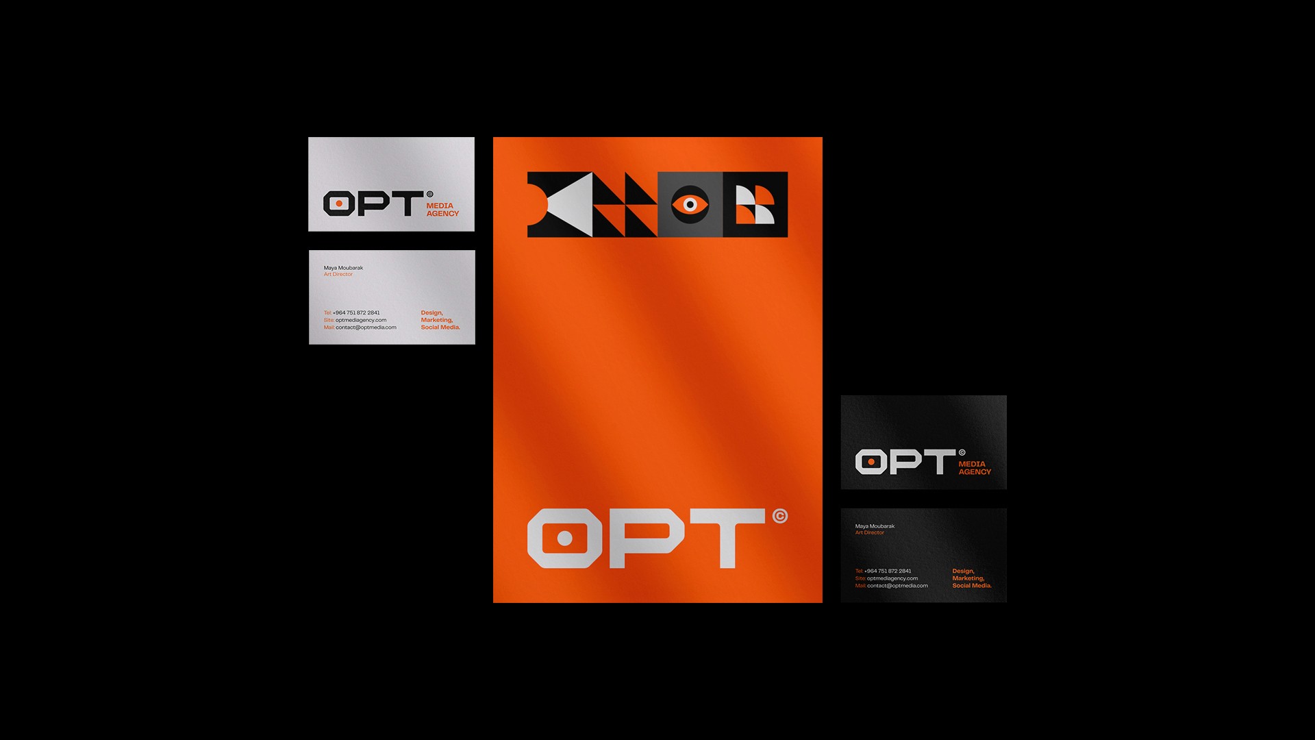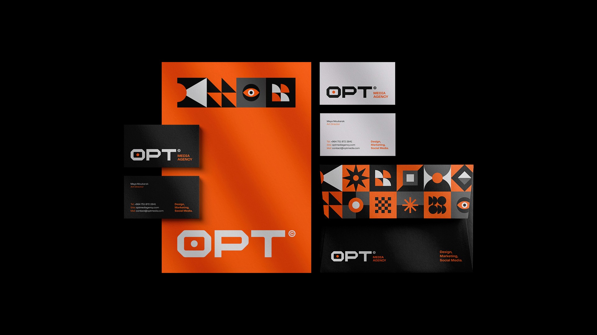 OPT is a digital agency specializing in media communication, offering comprehensive services that generate great results. To convey its full range of services and products, we have created a rich visual identity, featuring personalized and exclusive typography, as well as visual graphics that represent design, movement, and technology.
