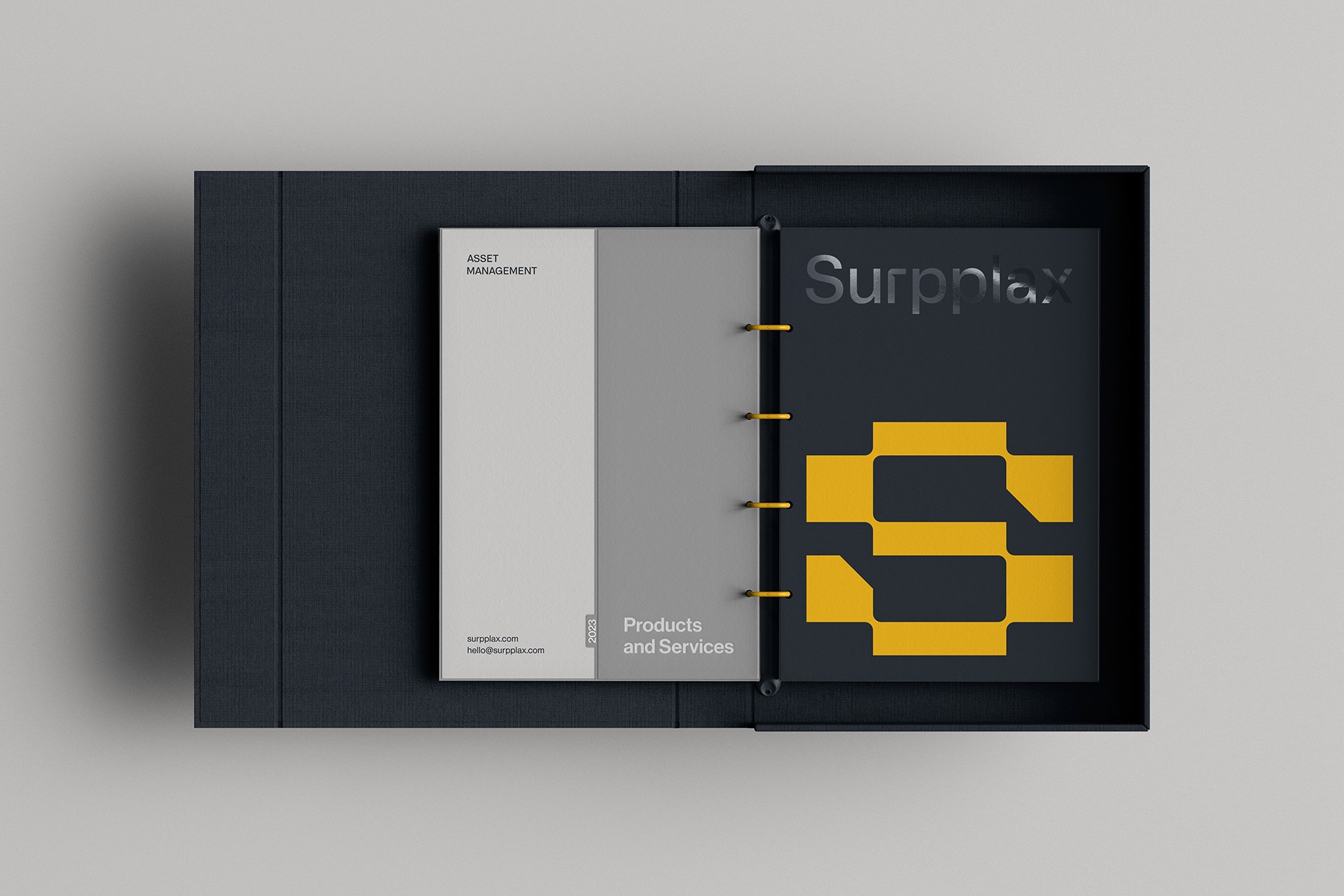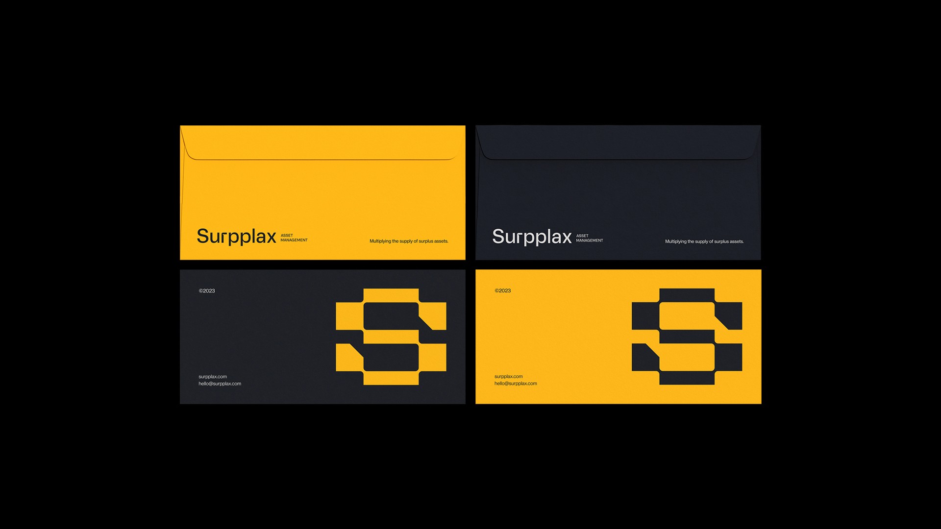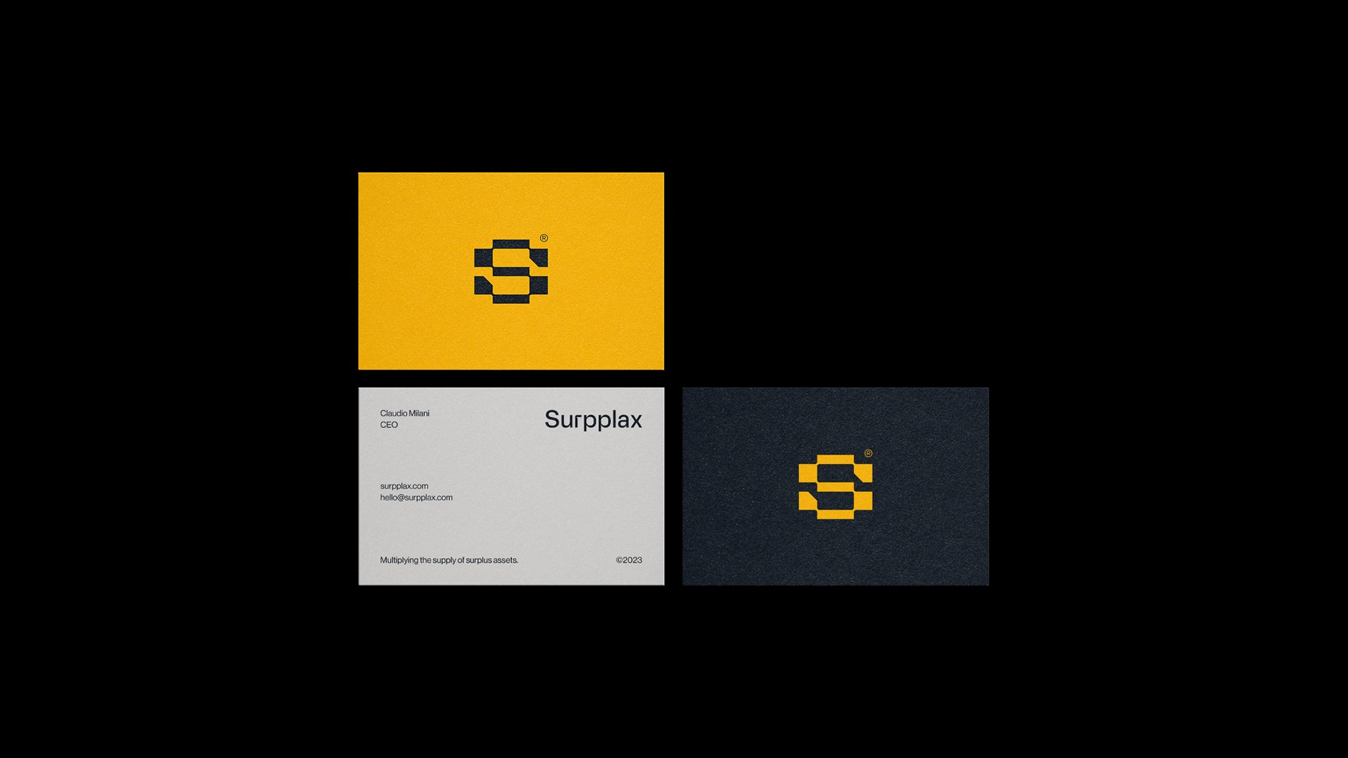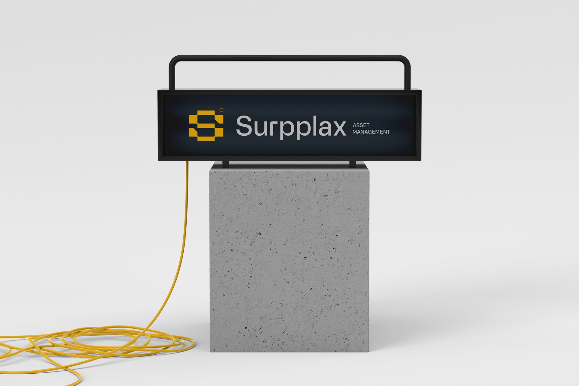 The name Surpplax is derived from the term "surplus assets" in English, with the X at the end serving as a multiplier. For the visual identity, a strong and striking symbol proved necessary. Its format with straight, curved, and diagonal lines conveys modernity and technology. Some modifications were also made to the main typography to bring more personality to the visual identity, concluding with a bold and digital color palette.