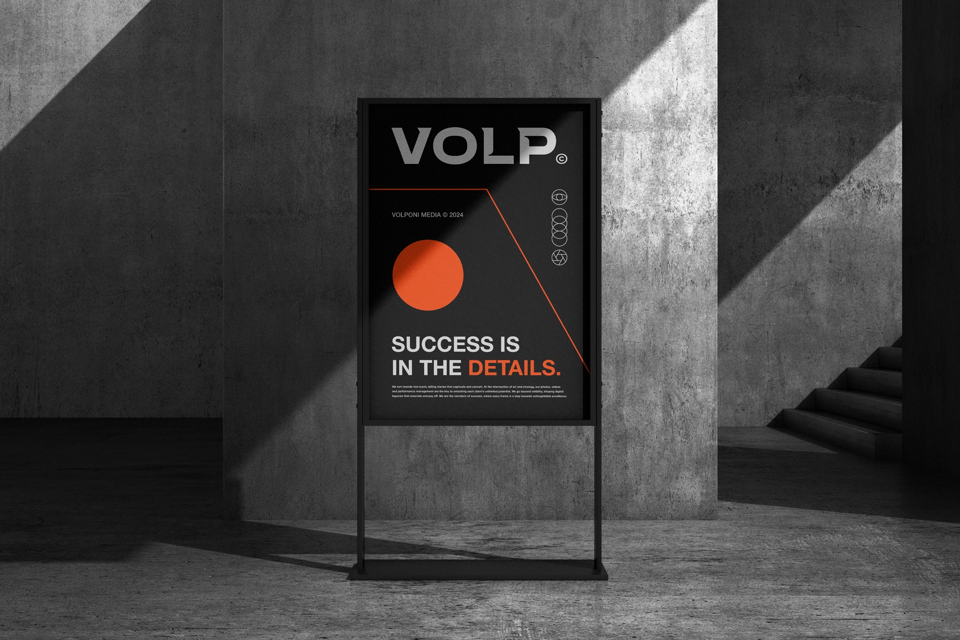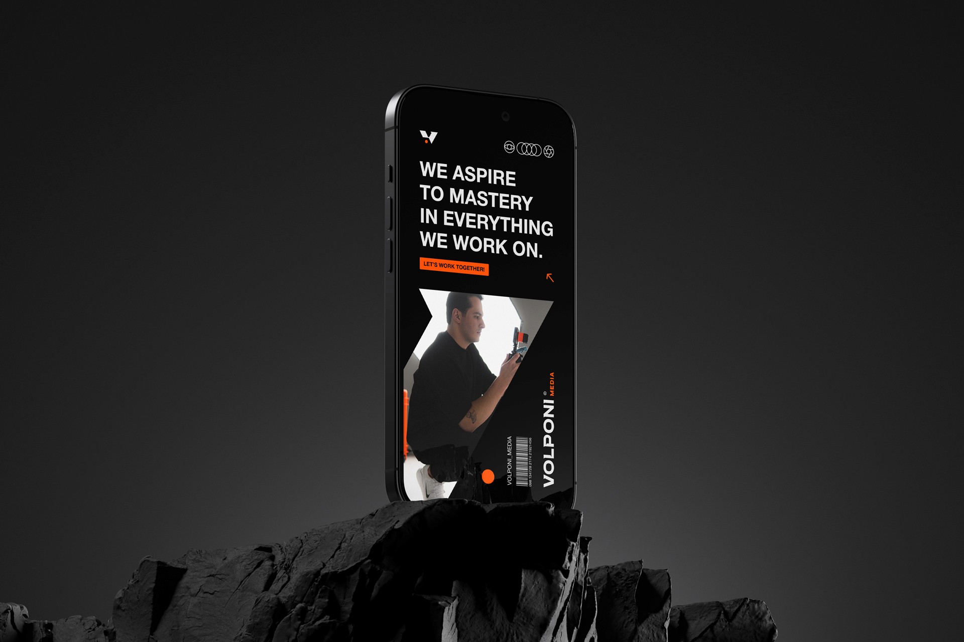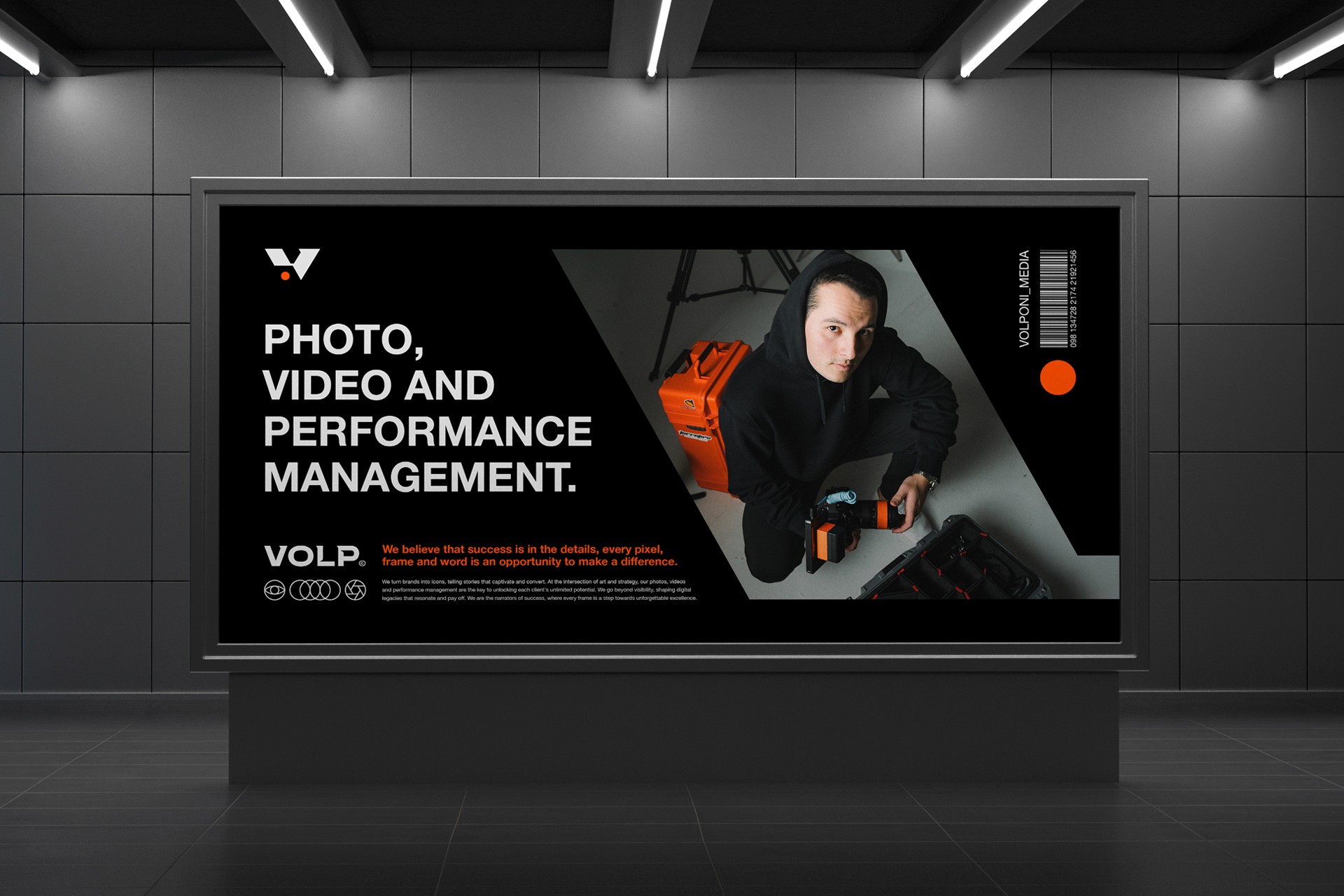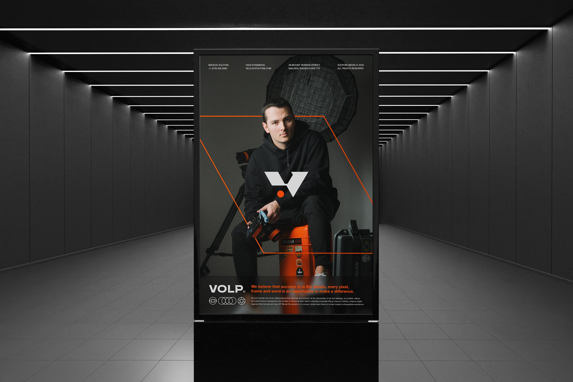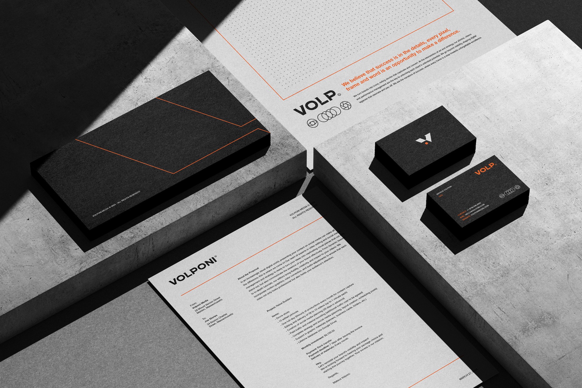 Volponi Media is an audiovisual production company that sells video, photography, and content and performance consulting services, with planning and results as its pillars. In the visual identity, we seek to convey something modern, minimalist, and vibrant, through the symbol, typography, colors, and all brand elements.
